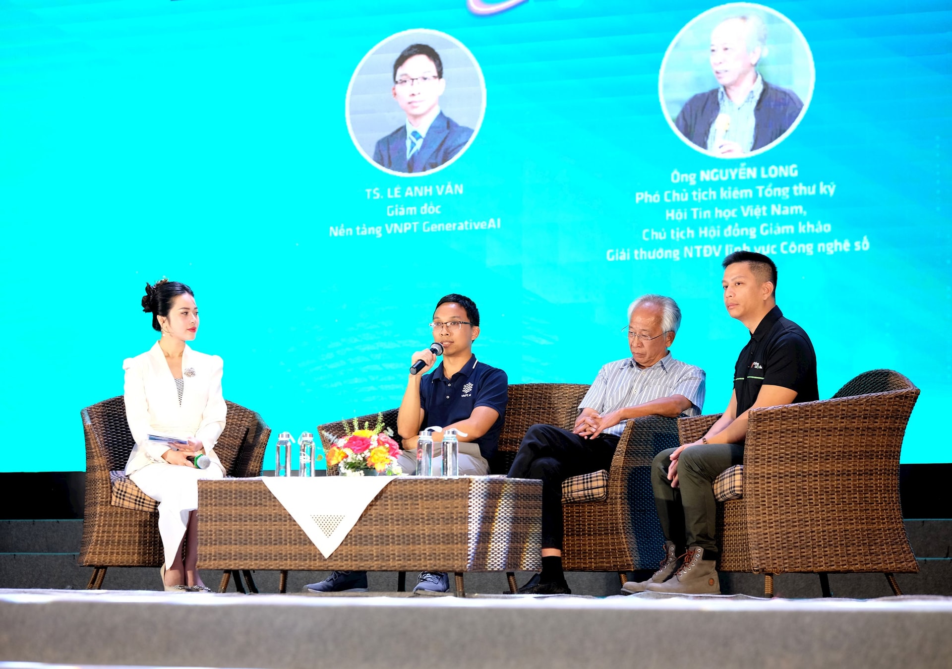Tham gia tọa đàm có ông Nguyễn Long, Phó Chủ tịch kiêm Tổng Thư ký Hội Tin học Việt Nam, Chủ tịch Hội đồng Giám khảo Giải thưởng NTĐV; ông Lê Anh Văn – Giám đốc Nền tảng VNPT GenerativeAI – VNPT AI; ông Ngô Minh Hiếu (Hiếu PC) – Chuyên gia an ninh mạng, Giám đốc Dự án Chống lừa đảo, chủ nhân Giải thưởng Ứng dụng vì cộng đồng NTĐV năm 2023. Các khách mời đã cùng thảo luận và giao lưu với sinh viên về vai trò của AI trong cuộc cách mạng chuyển đổi số, chia sẻ những cơ hội để các bạn trẻ trở thành “Nhân tài Đất Việt”, đóng góp sức mình vào hành trình kiến tạo đất nước trong kỷ nguyên số.
